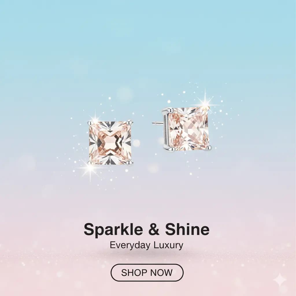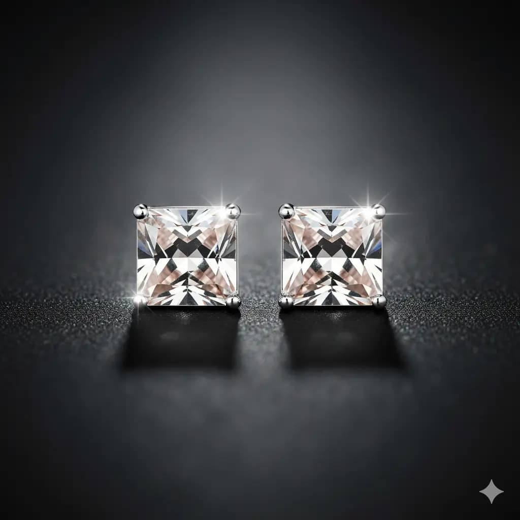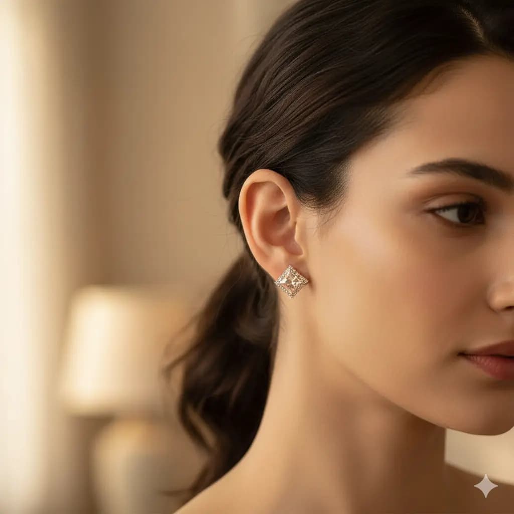 Minimalist square crystal studs that catch the light beautifully. A versatile everyday accessory that pairs effortlessly with both casual and formal attire.